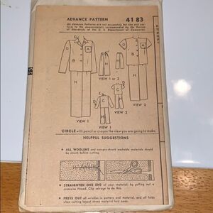 Vtg 40s Advance little girls pajamas pattern 4138
