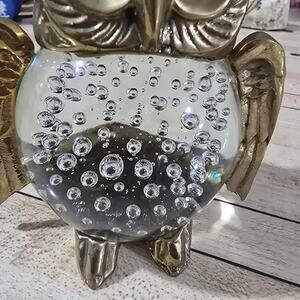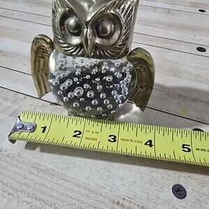 Vtg 50s 60s 70s Brass Bubble Glass Owl Bird Paperweight MCM Mid Century Modern