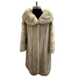 Vtg 50s 60s Cream Brown Set Back Collar Mink Coat M/S