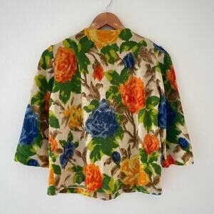 Vtg 50's 60's I. Magnin Made in West Germany Knit Floral Wool Button Up Cardigan