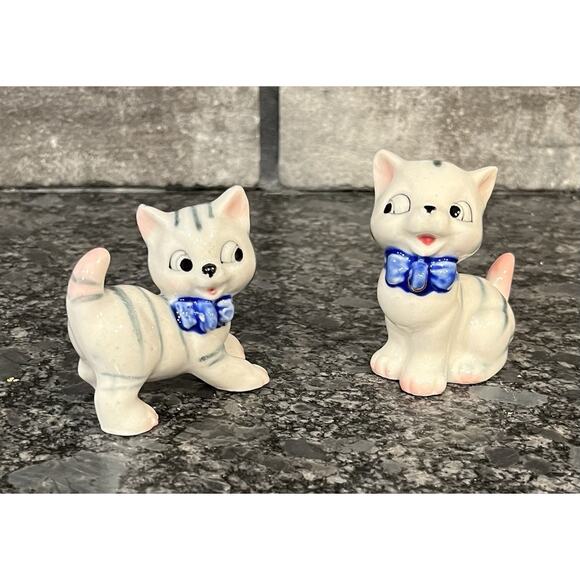 Vtg 50s 60s Lipper & Mann 2 Porcelain Striped Kittens Japan Missing Mom & Leash