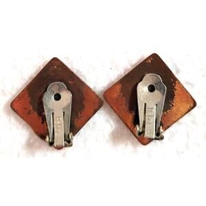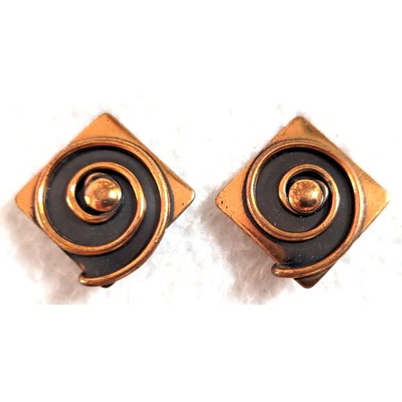 Vtg 50s 60s Signed Rebajes Copper Clip On Earrings MCM Modernist Abstract Spiral