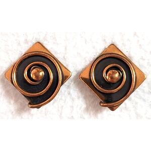 Vtg 50s 60s Signed Rebajes Copper Clip On Earrings MCM Modernist Abstract Spiral. Excellent condition.