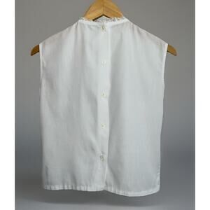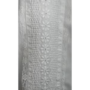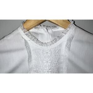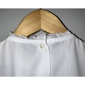 Vtg 50s 60s White Lace Trim Blouse Front Embroidered Design Back Button Sz S
