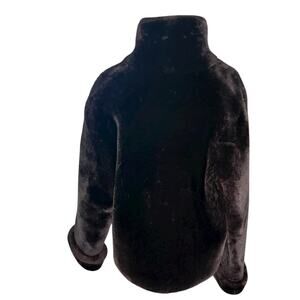 Thick plush pile with a classic boxy swing silhouette and dramatic rolled cuff sleeves