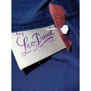 Vtg Velvet Circle Dress. Shipped with USPS Priority Mail. Beautiful blue/purple, periwinkle? Velvet dress with pearl flowers across the neckline. Full skirt. Mannequin is a size med-large and the dress just fits. Measurements taken on mannequin. Flaws: pics show darts were perhaps let out, belt missing, looks like it was custom made From Canadian designer Leo Danal Inc.