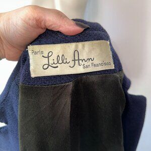 Vtg 50s Lilli Ann Coat Jacket Navy Blue Collar Classic Womens Size Medium Large