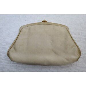 Vtg 50s MM Morris Moskowitz Beige Satin Clutch Handbag Rhinestone Clasp