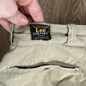 Vtg 50s Union Made Lee Chetopa Twill Sanforized 60s Khaki Pants Distressed 30x29