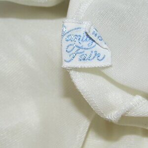 Off white. Double layer chiffon on top. Tie strap. Swiss dot and floral embroidery on top. Embroidered floral hemline. So pretty!