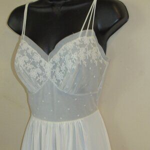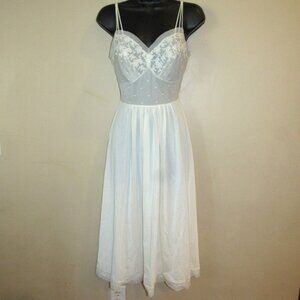 Vintage 50’s Vanity Fair Midi Slip Dress Gown Sz 32 Tricot Nylon Embroidered Dainty