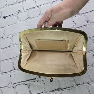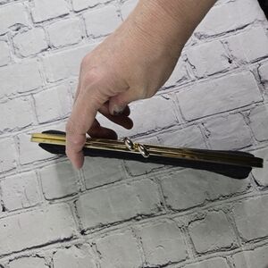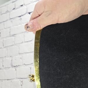 Vtg 50s black fabric wool stitched embroidered clutch purse
