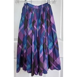 A beautiful and swishy little number in plaid in the lovely colors of purple, lavender, blue, gray and teal , this circle skirt is a party all by itself! The skirt, which I believe is late 1950s in vintage, has hanging loops with the maker's name: Modern Jr. by Gale & Gale.