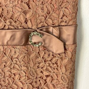 A Grace Taylor Original Vintage 50s 60s Lace Midi Sheath Dress Dusty Rose Sz S Mid-Century Elegant Old Money Cocktail Party Glam