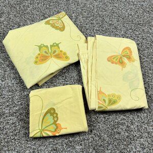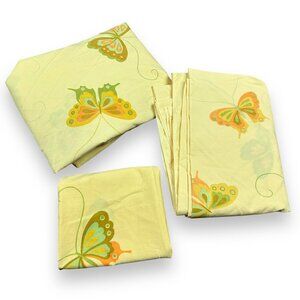 Vtg 60s 70s Hanae Mori 3 Pc Twin Sheet Set Butterfly Yellow MCM Retro Hippie
