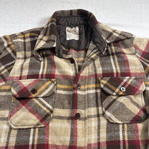 Vtg 60s 70s Montgomery Ward CPO Brown Red & Yellow Plaid Flannel Shirt Mens Sz M