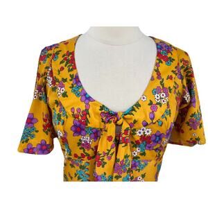 Vtg 60s 70s Yellow Floral Print Maxi Dress Cottage Boho Retro Groovy Handmade