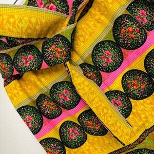 This listing is for a Vintage Mr B Of California Floral Barkcloth Skirt. Elastic waist. Reversible wide waist belt. Slit at the middle of the back lower hem.