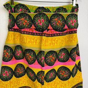 Vtg 60s Barkcloth Skirt Womens Multi Floral Slit Mr B Of California 37" Waist