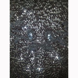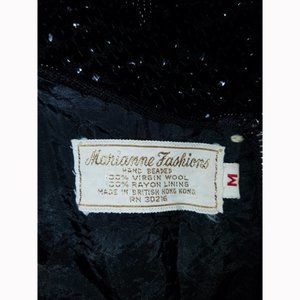 Vtg 60s Black Wool Sequined Hand Beaded Top M
