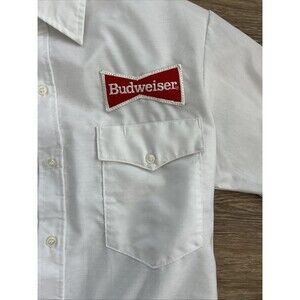 Vtg 60's Budweiser Button Up Shirt Adult XL White Short Sleeve Chain Stitch Greg