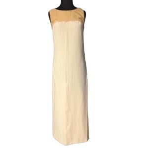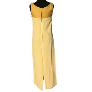 Vtg 60s Butter Yellow Modest Two-Toned Leaf Column Maxi Dress Womens XS Regency