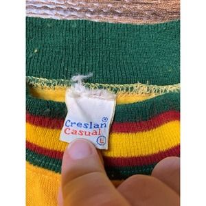 Vtg 60s Creslan Casual Yellow Green Shirt long Sleeve Ringer Sweater sz L (READ).