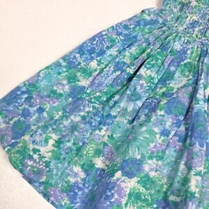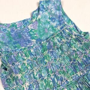 Vintage 60s sweet blue and green floral smocked dress. Tags are gone. Please check the measurements provided. Looks to fit around 3T.