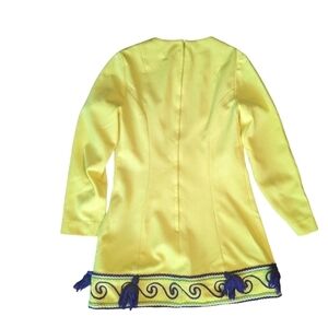 Vtg 60s Eve Le Coq hippie bohemian yellow tunic with purple scroll border
