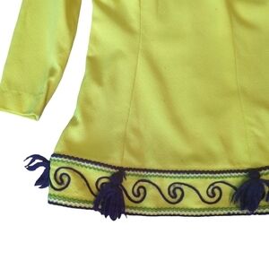 Vtg 60s Eve Le Coq hippie bohemian yellow tunic with purple scroll border sz XS