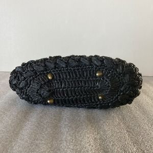 Vtg 60s Gaymode Woven Black Plastic Straw Purse Retro Hand Bag Footed Japan