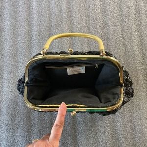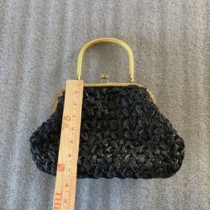 Vtg 60s Gaymode Woven Black Plastic Straw Purse Retro Hand Bag