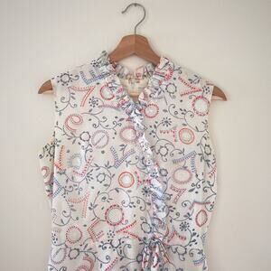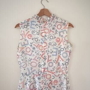 Vtg 60's LOVE Patterned Ruffled Sleeveless Mod Top Tunic Mini Dress Sz S/M Retro