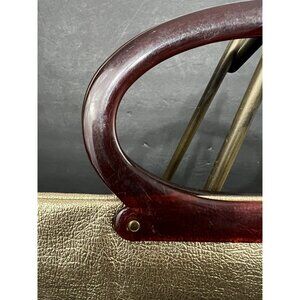 Vtg 60s Lady’s Pride Handbag Expandable Tote Gold Lame Tortoise Lucite Handle