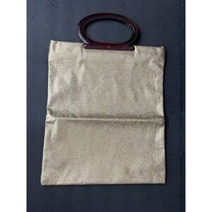 Vintage 60s Lady's Pride Handbag Expandable Folding Tote Gold Lame XLarge Tortoise Lucite Handle MCM 15.5 x 8.5