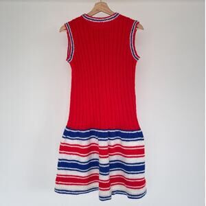 Vtg 60's Mod Red Striped Knit Acrylic Sweater Sleeveless Dress Sz M/L Retro