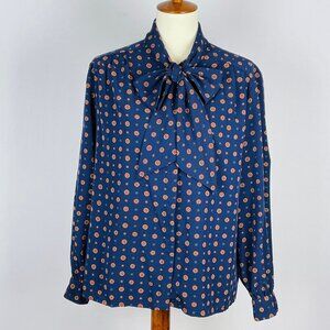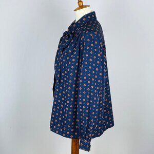 Vtg 60s Pendleton Country Sophisticates Pussybow Blouse Sz 18W Navy Feminine