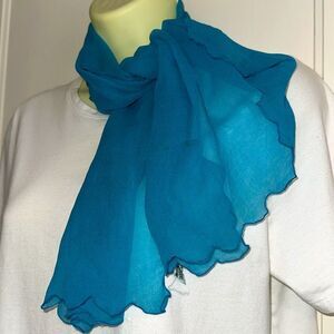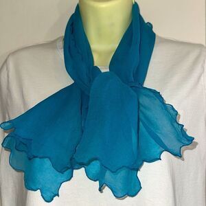 Vtg 60s Regal Aqua/turquoise triple sheer rayon neck scarf with scalloped edges