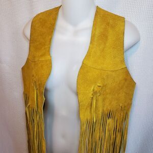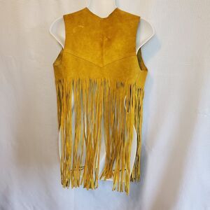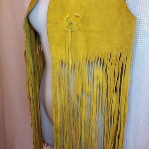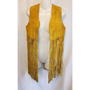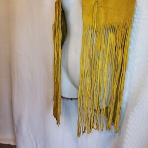 Vtg 60s Sz Sm Suede Leather Long Fringe Vest Hippie Boho Festival Mustard Yellow