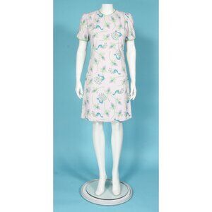 Vtg 60s THE VESTED GENTRESS Blue Green Peacock Print on Lavender Dress Sz 6 /703
