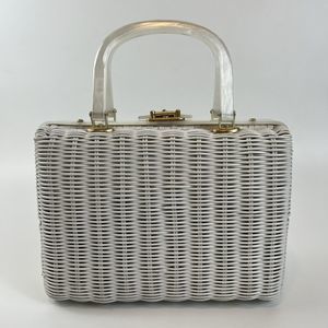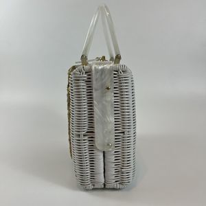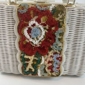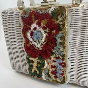 Vtg 60’s White Wicker Handbag Pearl Lucite Red Beaded Cottagecore Grannycore