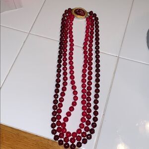 Vintage 60s/70s three layer red plastic bead necklace Excellent vintage condition Length is 22”