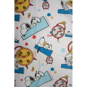 Vintage 1960s Peanuts Twin Flat Sheet Snoopy Woodstock Bedtime Alarm Clock Polka Dots