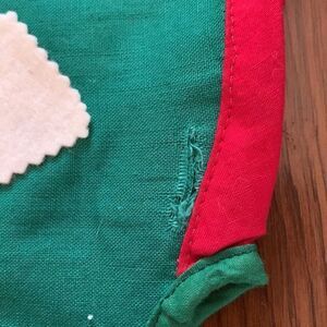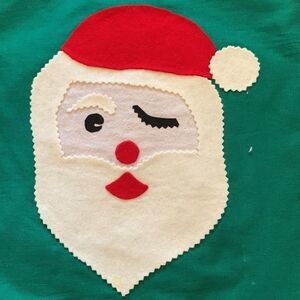 Vintage 60s double sided felt Santa faces on green cotton canvas Christmas toilet seat cover