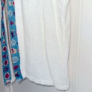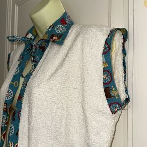Vtg 60s white terry cloth swimsuit coverup with fun turquoise retro print trim