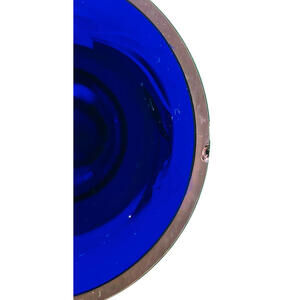 This vintage 6.5" cobalt blue Bohemian glass vase is hand-painted with enamel flowers and gold accents, giving it a charming and elegant look. Hand-blown in Czechia in 1965, this small round vase is perfect for any occasion and adds a touch of artistic flair to any room. With its deep cobalt blue color, white and gold accents, and footed base, this vase is a beautiful and timeless piece that is sure to be a collectible item for adults who appreciate vintage and bohemian style decor.