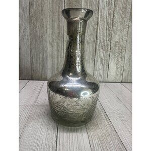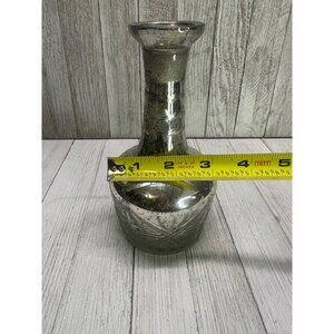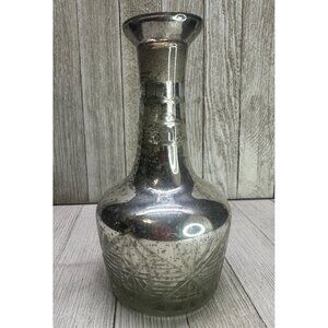 Vtg 7" Tall Silver Mercury Glass Bottle Vase with Etched Carving Base Decanter