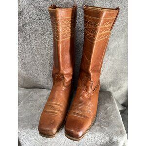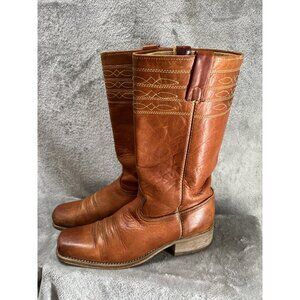 Vtg 70s 80s Dingo Cowboy Boots Square Toe Brown Leather Pull On Mens 11 D