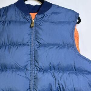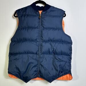 Vtg 70s 80’s Down Vest L Blue Safety Orange Reversible Hunting Puffer 80/20 Read