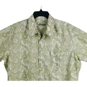 This vintage 70s 80s McGregor Hawaiian shirt in men's XL size features a retro design in green and beige colors, perfect for a Hawaiian-themed look. The lightweight construction makes it comfortable for everyday wear, and the button-up style adds a classic touch to the shirt. Ideal for those who appreciate retro fashion and want to make a statement with their clothing choices.